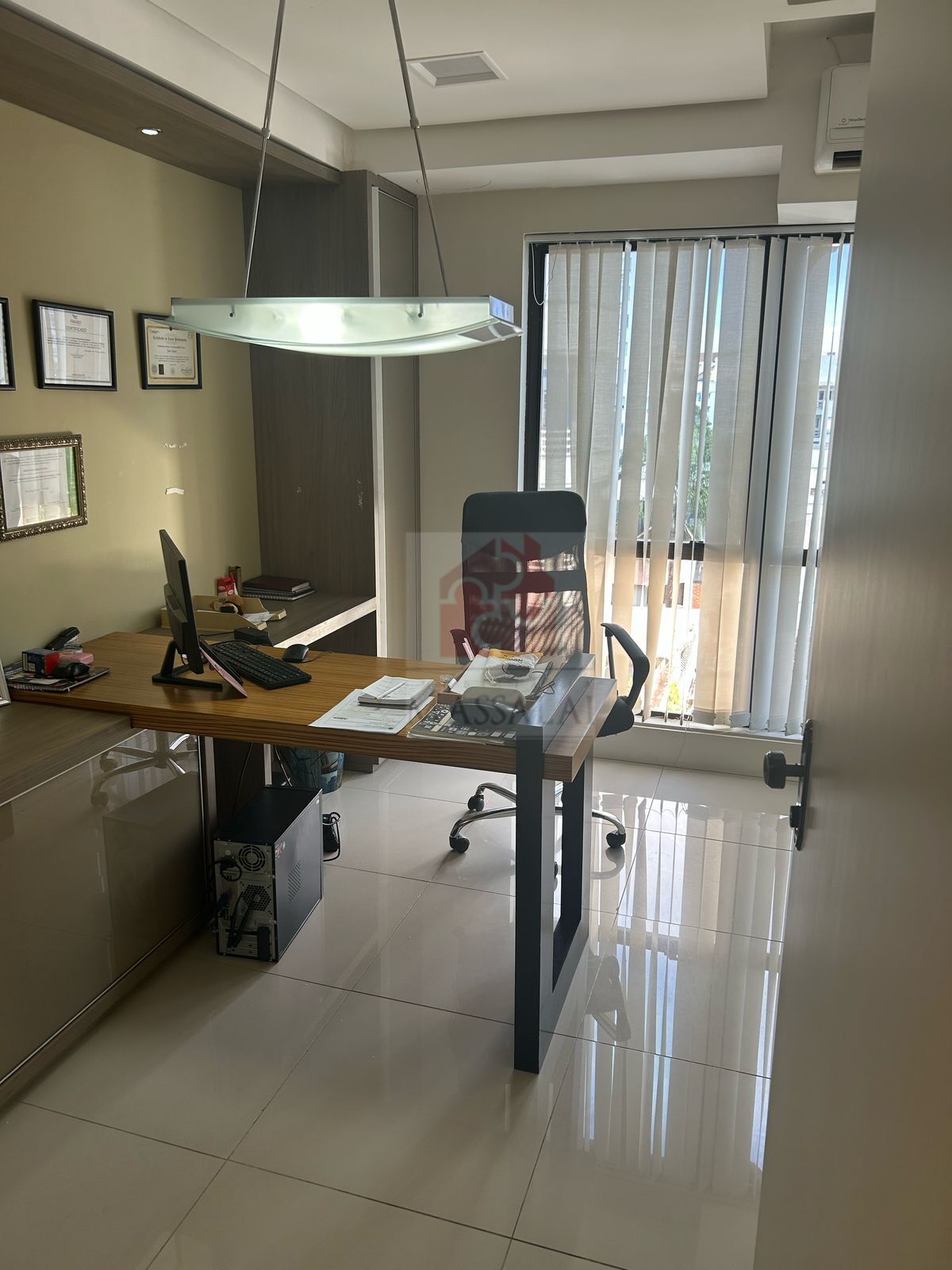 Sala reformada e com garagem à venda no Bairro Azenha, dividida em de 3 salas, lavabo, copa, móveis fixos, vaga de garagem coberta e escriturada de fundos, sol oeste em Edifício com elevador e portaria presencial, em exelente localização, próxima a rótula do Papa, Iesa e Estádio Olímpico.